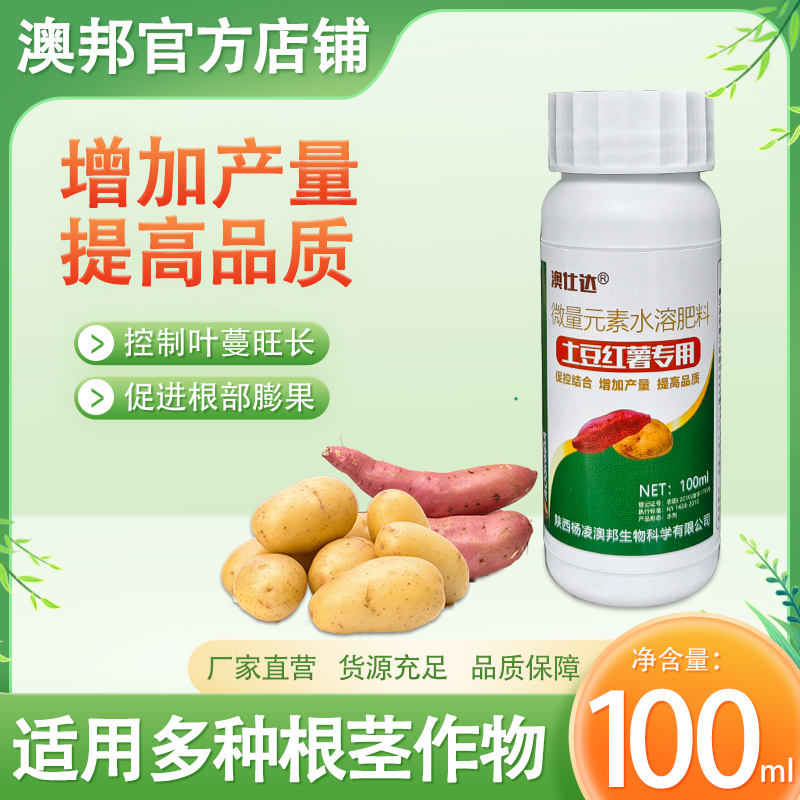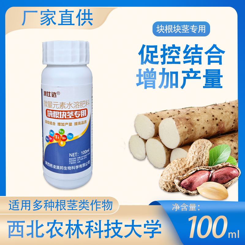 本產(chǎn)品是西北農(nóng)林科技大學(xué)研制的一種新型根莖類作物營(yíng)養(yǎng)調(diào)控劑。本品根據(jù)塊根、鱗、球莖作物的生理、生物學(xué)性能,選用多種植物生長(zhǎng)和化控物質(zhì),有效調(diào)控植物內(nèi)源激素平衡,控制植物秧蔓徒長(zhǎng),提高單位葉片的光合作用能力和根系對(duì)營(yíng)養(yǎng)的吸收能力,促進(jìn)營(yíng)養(yǎng)物質(zhì)向根莖等貯能器官輸送積累,加速根莖的細(xì)胞分裂等作用。